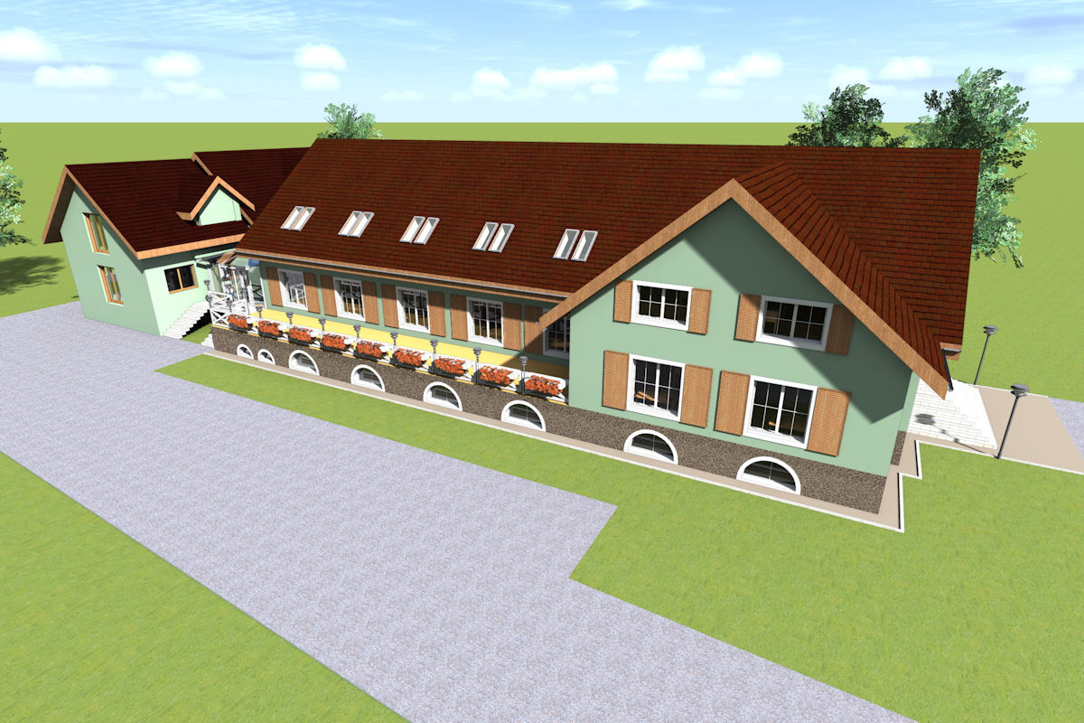 Głównym zadaniem będzie rozbudowa istniejącego budynku na wysokiej klasy ośrodek wypoczynkowy, a także: