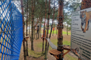 Specjalnie dla was zaprojektowaliśmy i stworzyliśmy unikatową trasę nowego parku linowego, a jej wyjątkowość polega na przyjęciu formy interdyscyplinarnej ścieżki edukacyjnej. Podczas wspinaczki napotkacie na 26 nowych przeszkód oraz 150m zjazdów tyrolskich o różnym stopniu trudności; będziecie mieli okazję poznać 12 gatunków zwierząt z różnych stron świata. Dzięki specjalnemu nagłośnieniu każdy uczestnik będzie słyszał odgłosy spotkanych zwierząt, co sprawi, że poczuje się jak w prawdziwej dżungli, lesie lub na safari. Co więcej park jest zintegrowany z imponującym nadziemnym stanowiskiem